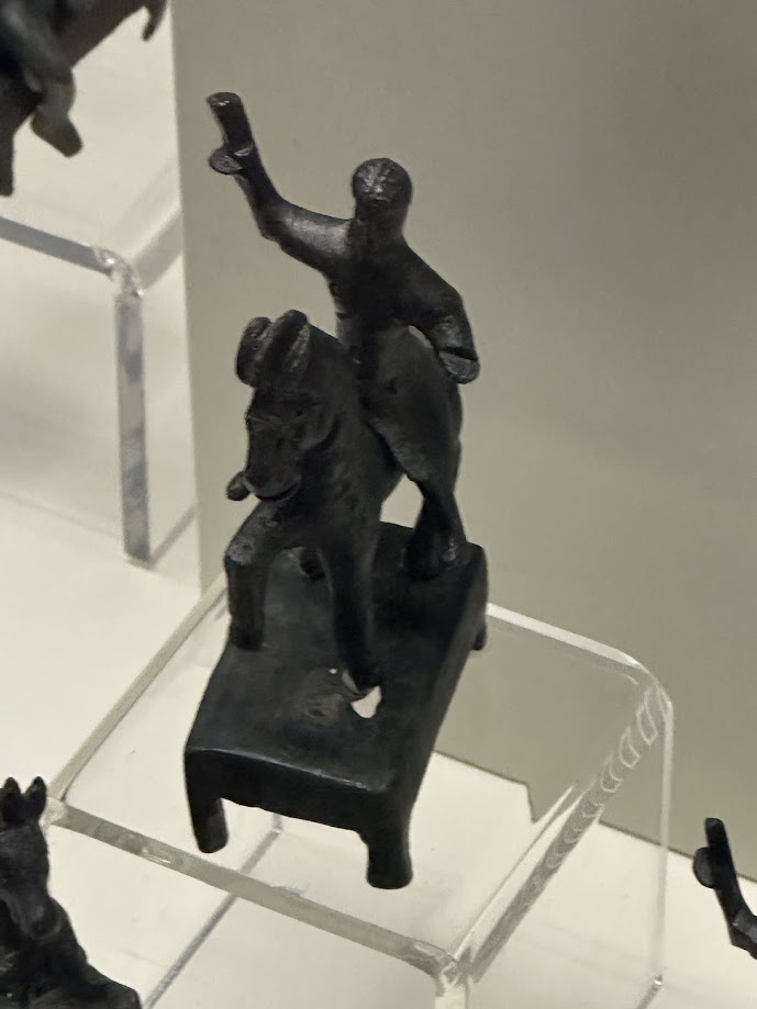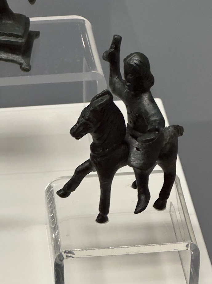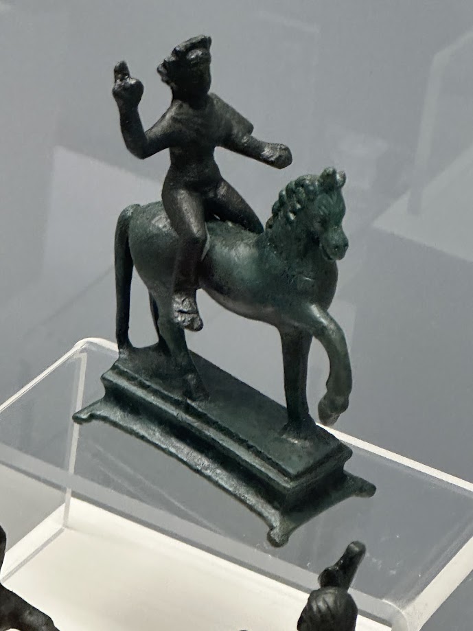 Та преди 1800 години такъв храм в прослава на Аполон издигнали в покрайнините на своя град жителите на пищната Аугуста Траяна. Построили го на днешния връх Аламура край село Ракитница , Старозагорско. Градът бил заможен, с големи вили на тракийски аристократи, украсени с великолепни мозайки, скъпи мебели и вносни предмети. Богатите хора обичали да глезят Аполон. При разкопките на Аламура тази година археолозите намериха множество оброчни дарове. Сред тях фрагменти от мраморни статуетки на бога и фигурки, изработени от бронз, сребро и олово. Същите тези, които ми заприличаха на каубои. Фигурките навярно са произведени в някоя от многобройните градски работилници за метал. До 8 юни можете да ги видите в Археологическия музей в София.