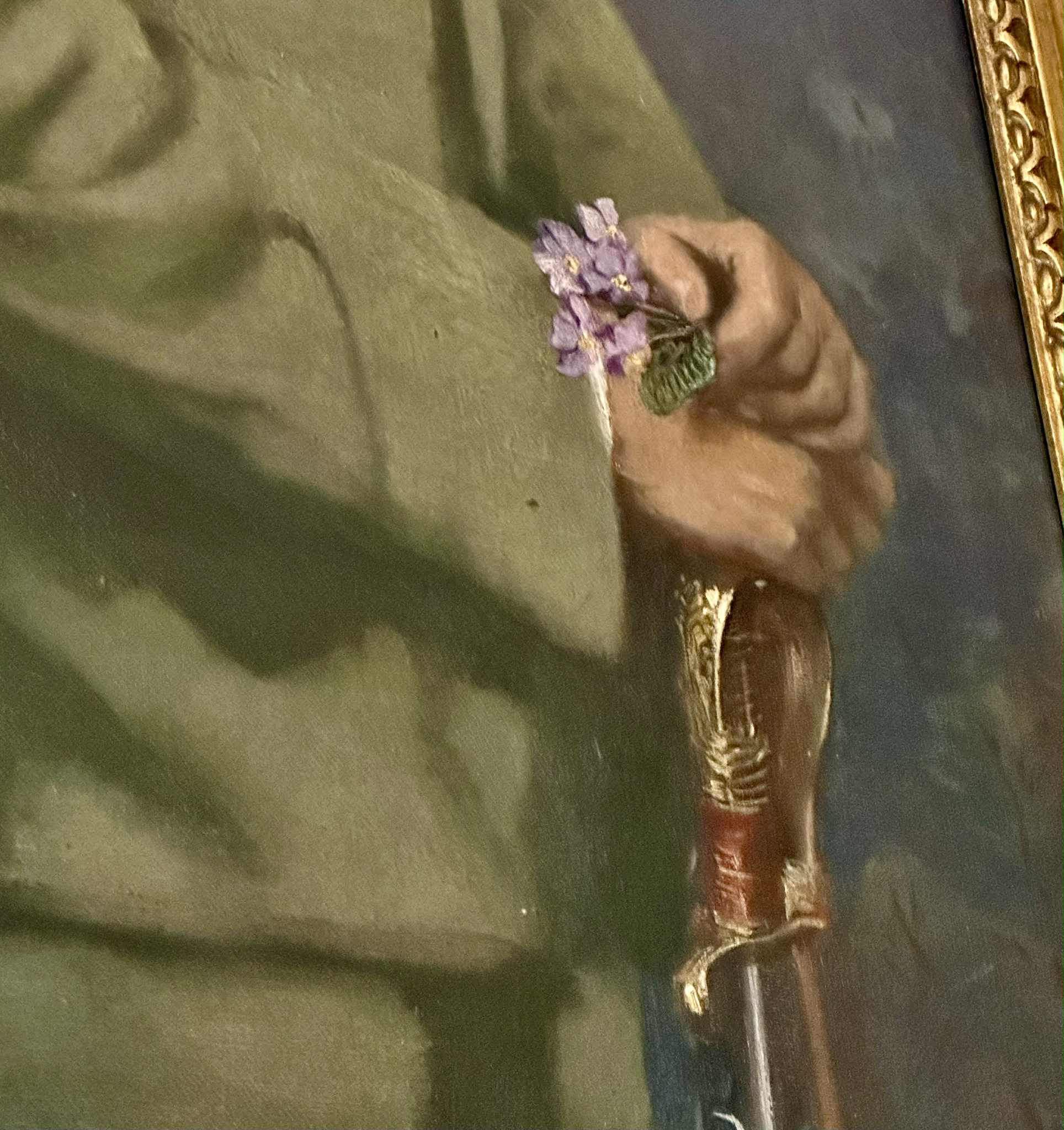 Кой е този интелигентен мъж, който ни гледа замислено от портрета? Военната униформа му стои някак странно, сякаш я е сложил, защото е нямало какво друго да облече. И колко военни офицери сте виждали да стискат в ръцете си едновременно меч и букетче теменужки?