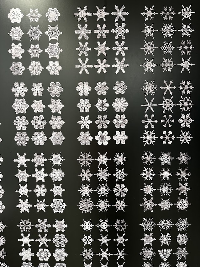 Почти се разплаках пред таблото със снежинките. Телепортира ме в мразовит зимен ден преди много години, на улица пред бабини ми. Валеше сняг. Подскачахме, щурахме се и състезавахме кой колко снежинки ще улови на езика си. По едно време си погледнах яката. Беше от черна пухкава кожа. В кадифения й капан се бяха уловили снежинки. Всяка беше различна – едни рошави и бодливи, други – като плоски ледени цветя. За миг потънах в царството на Ледената кралица. Навярно така се е почувствал Уилсън „Снежинката“ Бентли, когато през 1885 година за първи път видял снежинка под микроскоп. През живота си той заснел повече от 5000 кристалчета и доказал на света, че напълно еднакви снежинки няма. Извод, до който стигнахме и ние в нашата махала през онзи далечен зимен ден. Едва сега разбрах, че без да знам съм копирала Бентли с черната си яка. Един от неговите методи да улавя и заснема снежните кристали бил да улавя снежинки върху платно от черен кадифен материал, за да се откроят.