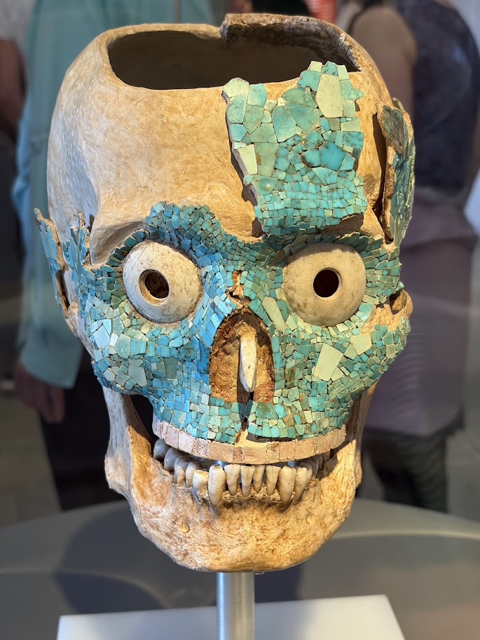 От разхвърляните кости било трудно да се определи колко души били погребвани там през годините. Ясно било само, че имали високо положение в обществото.  Нещо като династичен мавзолей, използван многократно и в различни исторически периоди.  Под богатия микстекски слой открили по-стари сапотекски останки. Някои от костите били гравирани и оцветени – очевидно мъртвите били посещавани редовно и с тях правели церемонии.  Навярно точно за такива церемонии бил използван и облепеният с нефритена мозайка череп, който намигнал на откривателите.  Микстеките му отрязали темето, боднали му мида вместо нос и боядисали вътрешността в червено.  Дали са го ползвали за луксозен бокал, или за кадилница – да горят в него някакви билки и да опушват ритуалите си?  Представете си колко ефектен ще да е бил, с валма от пушек през очите и кривите зъби!  Датировката му е 650-800  година.  Само напомням, че Хан Крум победил Никифор през 811 и наредил да посребрят черепа му и да го използват за бокал по време на ханските пирове.  Очевидно сервизите от черепи били някакъв световен тренд по онова време.
