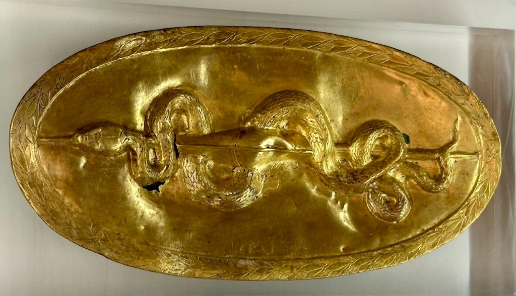 В едната могила бил кремиран мъж в пълно бойно снаряжение заедно с коня си. Ето скромния списък с находките (неизчерпотелен): интересна плетена ризница, рядко срещана през онези времена, копия, два меча, единият от които богато украсен със сребърни апликации, ловен нож, инкрустиран със скъпоценни камъни, златен венец, масивен пръстен, златна фибула, изключителна златна огърлица, която няма аналог в България и златна гривна с плочки (над всички тези неща Луи Франсоа Картие би ридал с глас от завист), тоалетно сандъче със сребърен и костен обков и масивен златен начелник с изображение на змия. А конят е погребан с цели три сбруи – златна, сребърна и бронзова.